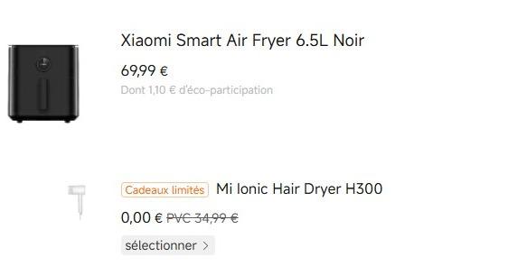 👉 智能空气炸锅 6.5 升 + 赠送米家离子吹风机 H300 >> 仅69€收🔥数量有限,先到先得!!