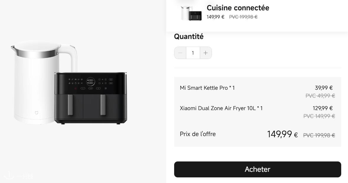 2️⃣智能热水壶Pro +双区空气炸锅10L 149.99€收💥一站式满足饮水与美食需求,厨房好物一步配齐!
