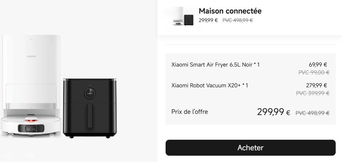 3️⃣智能空气炸锅6.5L +扫地机器人X20+ 仅需299.99€立省200€🔥烹饪清洁双省心,无油美食 + 全屋洁净一键搞定,懒人居家必备套装!