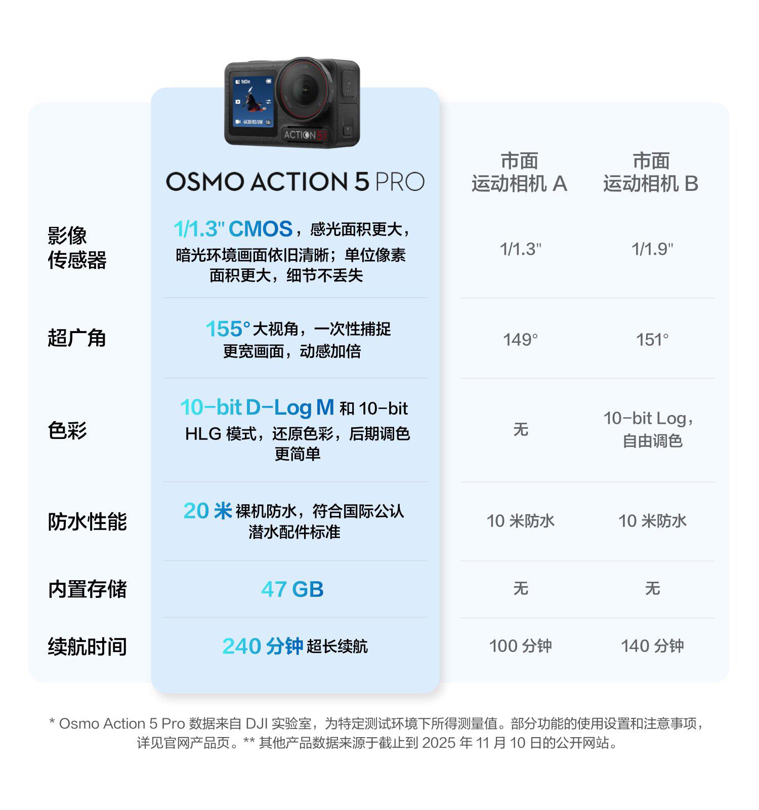 大疆 Osmo Action 5 Pro 标准套装 >> 防水运动相机,1/1.3英寸传感器,4K/120fps视频,被摄体跟踪,稳定防抖,双触控OLED屏,适用于运动与Vlog