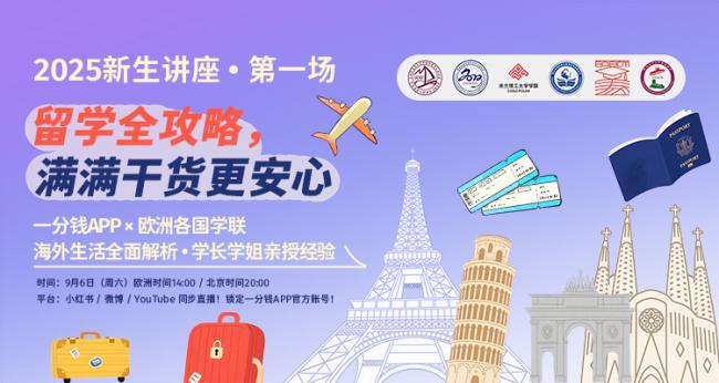 📢 2025 新生必看!留学欧洲第一课开讲啦!一分钱APP联合各大学联进行新生讲座直播!少走弯路少踩坑!