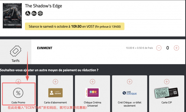 首映场独家优惠码:在购票页输入折扣码【ECENTIME】,立减3欧!