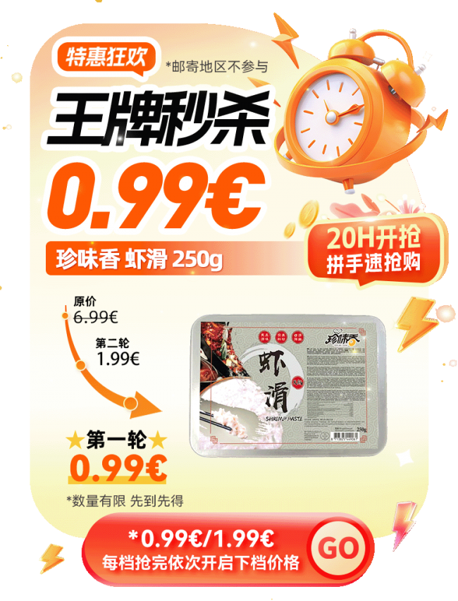 | 11月14日 20:00 | 虾滑 | 250g | 0.99€ |