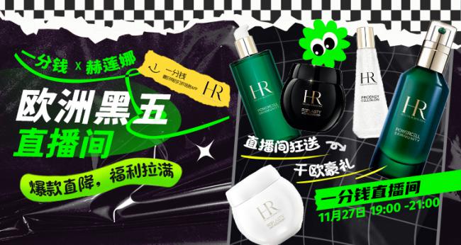 一分钱APP🎉黑五11.27直播狂欢夜|赫莲娜专场!独家送礼,全线史低!直播间还有千欧豪礼送不停!