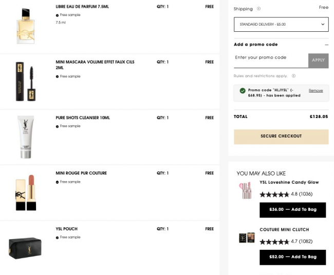YSL官网>> 独家满£70全场65折+送8件大礼🎁