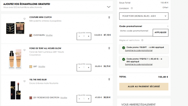 3.加入心仪单品,删掉不打折的皮革腮红,折后满120€即可获得11件赠礼💥