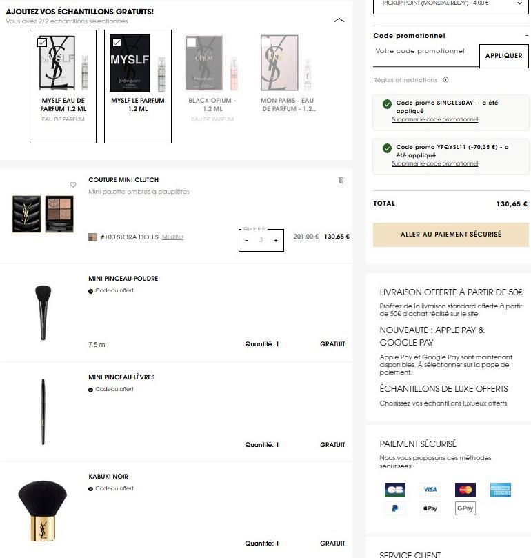👉 独家满70€送3支化妆刷套组!赠礼码:YFQYSL11