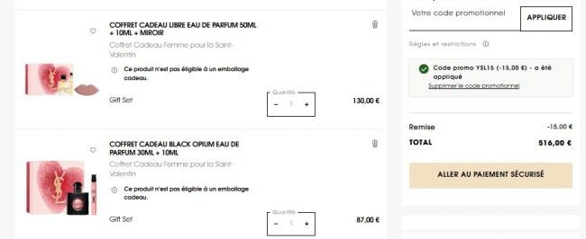 满50€立减15€码:YSL15